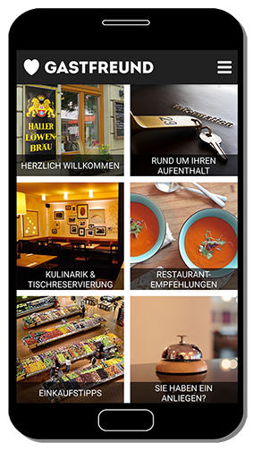 Jetzt kostenlos die GASTFREUND-App herunterladen und unsere digitale Gästemappe auf dem Smartphone oder Tablet immer dabeihaben...